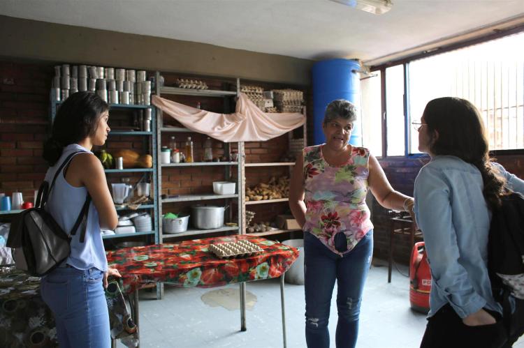 Bárbara de Sousa and María Isabel Ramírez talk with Amelia Flores, community leader and pioneer of the project.