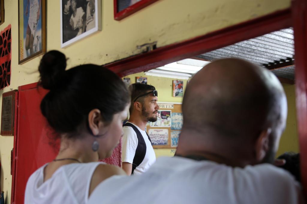 Club Alegres All Star desde el funicular. Barrio La Ceiba. San Agustín del Sur. Caracas, 2018. Foto @Marcos CoronelMarcos Coronel observa fijamente la interacción entre Emilio Mujica y Reinaldo Mijares. Club Alegres All Star. La Ceiba, Barrio San Agusín, 2017. Foto @Nickol BendekEmilio Mujica, líder del barrio, narrando parte de la historia de San Agustín. Al fondo Parque Central. 2017. Foto @Nickol BendekPercepción del vacío en la Plazoleta_ Escenario de calle. Afinque de Marín. Barrio San Agustín, 2018. Boceto @Marcos Coronel