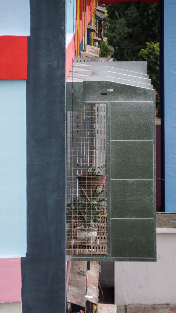 En su empeño de mejorar la vivienda, Paula y Rafael han debido modificar interiores para resolver problemas de infraestructura y particularmente modificar las fachadas con la intención de ampliar el paisaje, colocar las plantas, tender la ropa, mirar hacia afuera y ventilar, así como lo han hecho sus vecinos de muchas otras maneras.